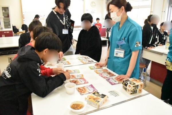 栄養・療育ブース。絵本の読み聞かせのあと、実際の食事を見学しました。同じ味付けでも、形態によっての違いを学びました。「お腹空いた」という子がたくさんいました。